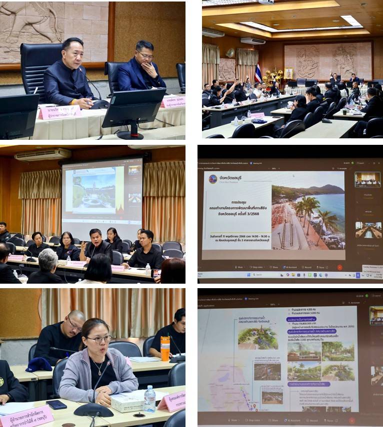 วันที่ 11 พฤศจิกายน พ.ศ. 2568 การประชุมคณะทำงานโครงการพัฒนาพื้นที่เกาะสีชัง จังหวัดชลบุรี ครั้งที่ 3/2568 ณ ห้องประชุมชลบุรี ชั้น 3 ศาลากลางจังหวัดชลบุรี