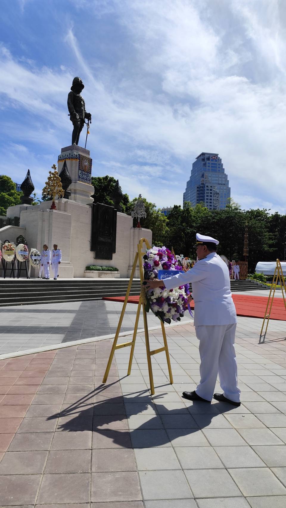 วันที่ 25 พฤศจิกายน 2567 ณ พระบรมราชานุสรณ์ สวนลุมพินี กรุงเทพมหานคร ว่าที่ร้อยตรีพัฒนภูมิ อังศุสิงห์ ผู้อำนวยการฝ่ายบริหารการจัดเก็บรายได้ พร้อมด้วยพนักงานองค์การจัดการน้ำเสีย วางพวงมาลาถวายราชสักการะ เนื่องในวันคล้ายวันสวรรคตพระบาทสมเด็จพระมงกุฎเกล้าเจ้าอยู่หัว “วันสมเด็จพระมหาธีรราชเจ้า” ประจำปี 2567