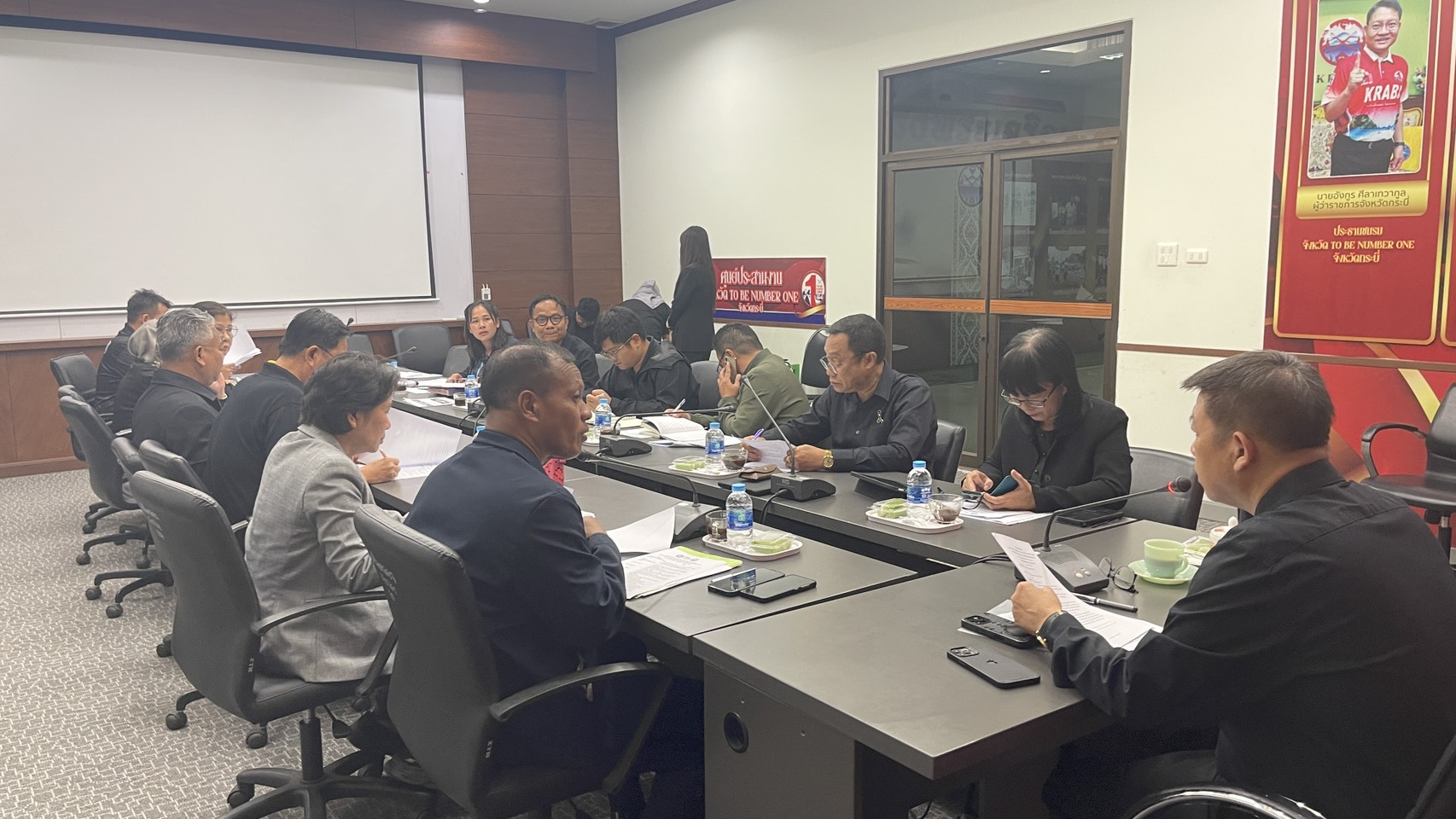 วันที่ 21 พฤศจิกายน พ.ศ. 2568 เวลา 09.30 น. ณ ห้องประชุมเหนือคลอง ชั้น 5 ศาลากลางจังหวัดกระบี่ นายอมรชัย หิรัญรัตน์ ผู้จัดการสำนักงานจัดการน้ำเสียสาขากระบี่ พร้อมด้วยพนักงาน เข้าร่วมประชุมพูดคุยรายละเอียดการเตรียมการต้อนรับรัฐมนตรีช่วยว่าการกระทรวงมหาดไทย (นางสาวศศิธร กิติธรกุล) และคณะ ซึ่งจะเดินทางมาเป็นประธานในการเปิดงาน “เปลี่ยนน้ำเสีย คืนน้ำใส ให้พีพี” ณ ศูนย์บริหารจัดการคุณภาพน้ำ องค์การบริหารส่วนตำบลอ่าวนาง (เกาะพีพี) ระหว่างวันที่ 25 – 28 พฤศจิกายน 2568 โดยมีนายสุวิทย์ สุริยะวงค์ รองผู้ว่าราชการจังหวัด ปฏิบัติการแทนผู้ว่าราชการจังหวัดกระบี่ และหัวหน้าส่วนราชการที่เกี่ยวข้องเข้าร่วมประชุม เพื่อให้การปฏิบัติราชการเป็นไปด้วยความเรียบร้อยและบรรลุวัตถุประสงค์ของราชการ