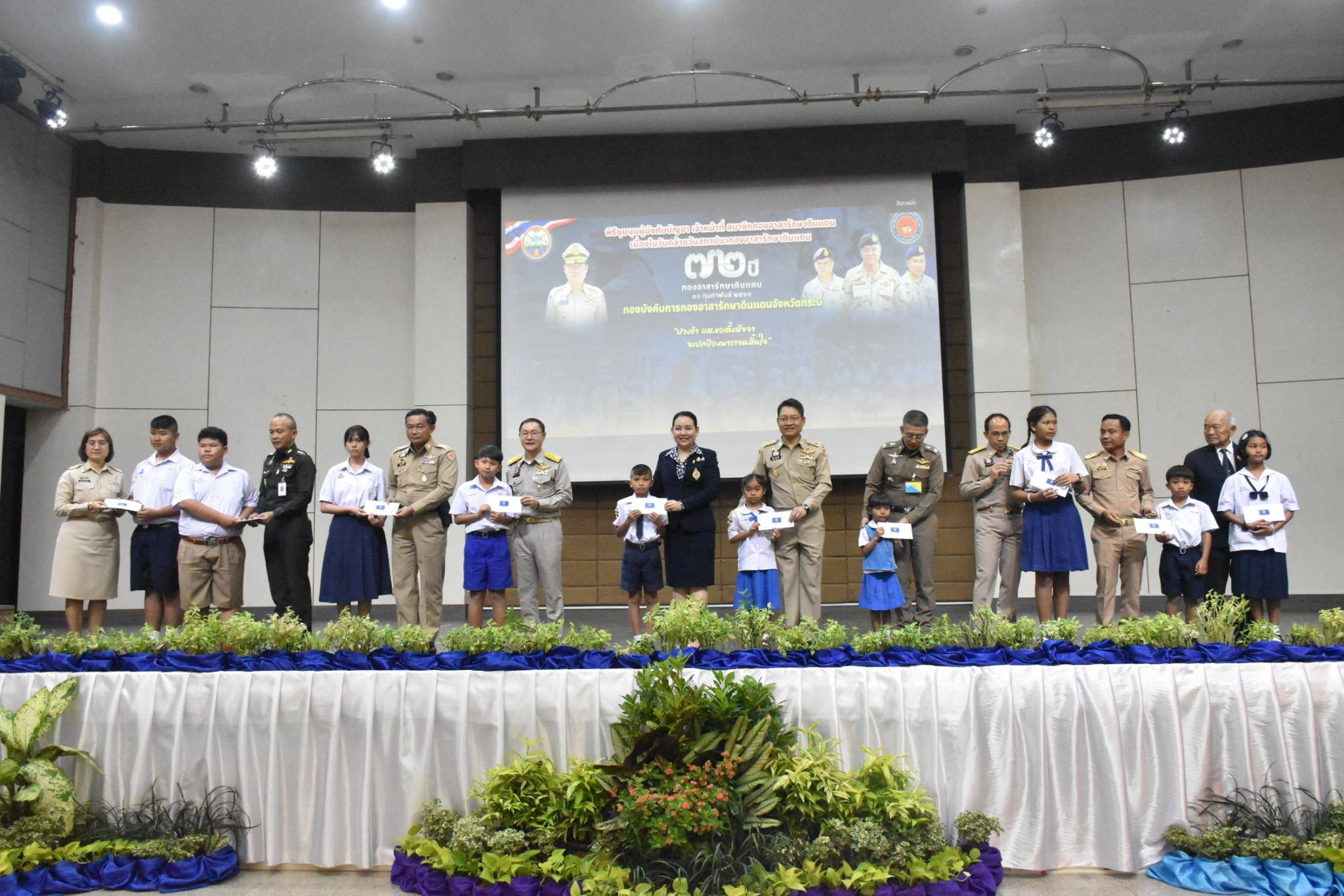 โอกาสนี้ มีการมอบเข็มอาสารักษาดินแดนสดุดี และมอบประกาศนียบัตรผู้ปฏิบัติงานดีเด่นในรอบปี 2568 พร้อมมอบทุนการศึกษาแก่บุตรสมาชิกกองอาสารักษาดินแดน จากมูลนิธิอาสารักษาดินแดนในพระบรมราชินูปถัมภ์ จำนวน 4 ทุน และทุนการศึกษาของชมรมแม่บ้านมหาดไทยจังหวัดกระบี่แก่บุตรข้าราชการ ลูกจ้างประจำ พนักงานราชการของส่วนราชการ พนักงานรัฐวิสาหกิจในสังกัดกระทรวงมหาดไทย และสมาชิกกองอาสารักษาดินแดน จำนวน 59 ทุน เพื่อส่งเสริมโอกาสทางการศึกษาและเป็นสวัสดิการสร้างขวัญกำลังใจแก่ครอบครัวกำลังพล