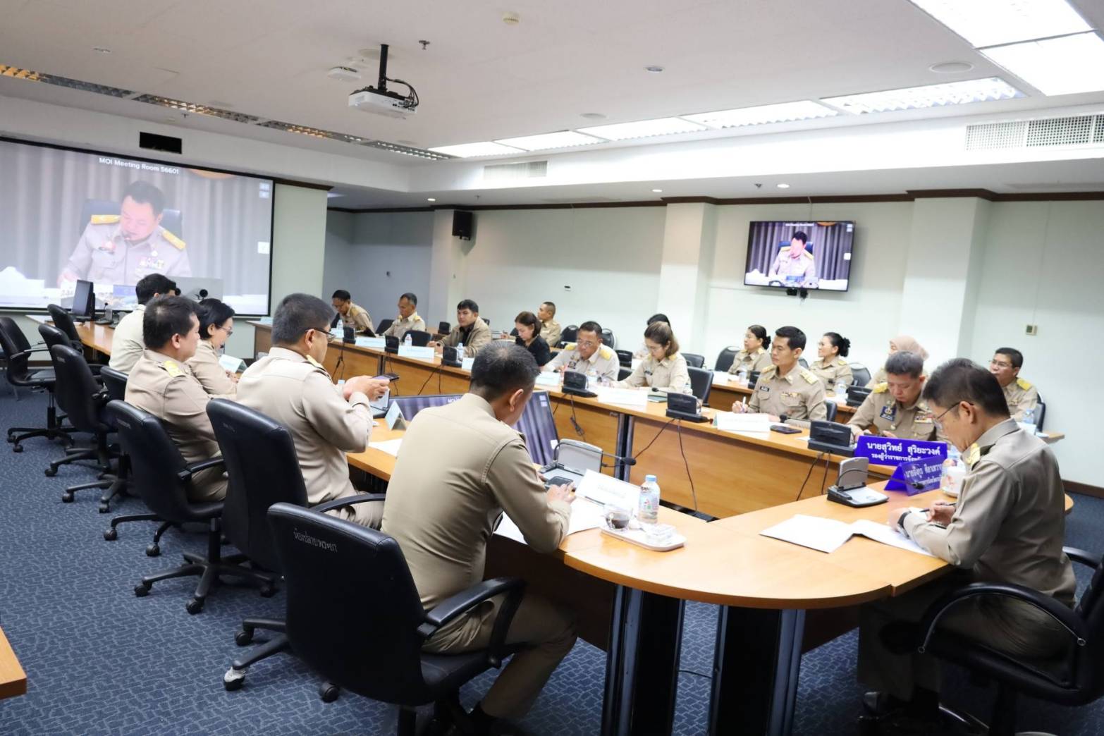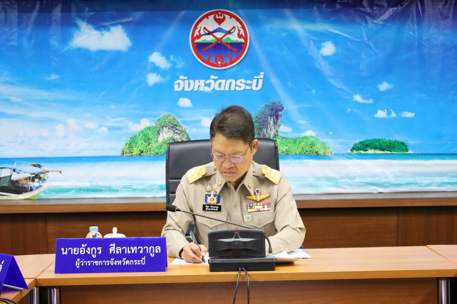 วันที่ 22 เมษายน พ.ศ. 2569 เวลา 08.00 น. นายอมรชัย หิรัญรัตน์ ผู้จัดการสำนักงานจัดการน้ำเสียสาขากระบี่ เข้าร่วมประชุมขับเคลื่อนภารกิจสำคัญของกระทรวงมหาดไทย ผ่านระบบวีดิทัศน์ทางไกล (VCS) โดยมีนายอนุทิน ชาญวีรกูล นายกรัฐมนตรีและรัฐมนตรีว่าการกระทรวงมหาดไทย เป็นประธานกล่าวเปิดการประชุม ซึ่งมีนายอังกูร ศีลาเทวากูล ผู้ว่าราชการจังหวัดกระบี่ พร้อมด้วยหัวหน้าส่วนราชการ หัวหน้าหน่วยงานสังกัดกระทรวงมหาดไทยจังหวัดกระบี่ ร่วมประชุมขานรับข้อสั่งการนายกฯ เน้นป้องกันก่อนเกิดภัย ย้ำ งบฯ ทุกบาทต้องโปร่งใส ไร้การเมืองแทรก ณ ห้องประชุมปลายพระยา ชั้น 2 ศาลากลางจังหวัดกระบี่ 9/10
