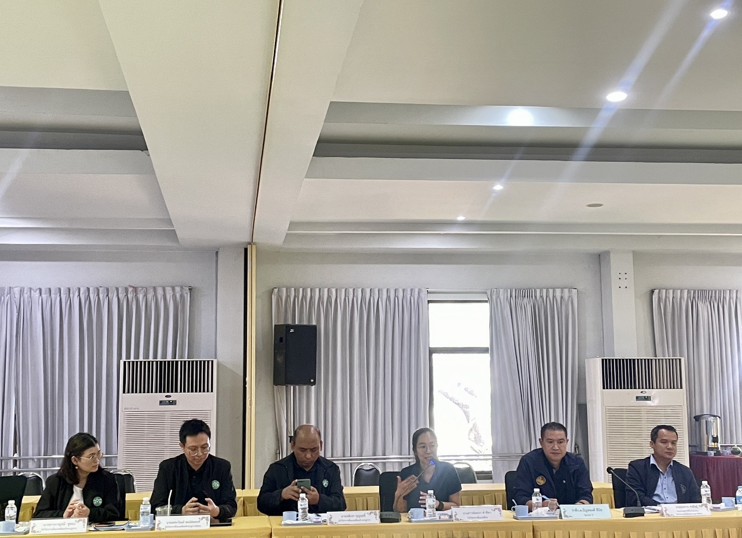 วันที่ 18 มีนาคม พ.ศ. 2569 ณ ห้องแอมเบอร์ 2–3 ศูนย์แสดงสินค้าและการประชุมอิมแพ็ค เมืองทองธานี อำเภอปากเกร็ด จังหวัดนนทบุรี นางดวงแข ยงสุวรรณ ผู้อำนวยการสำนักผู้อำนวยการ องค์การจัดการน้ำเสีย เข้าร่วมพิธีมอบแบบลายผ้าพระราชทาน “ลายขอสมเด็จฯ – เจ้าฟ้าฯ” และ “บุปผาบรมราชินีนาถ” ซึ่งกรมการพัฒนาชุมชน กระทรวงมหาดไทย ดำเนินโครงการสร้างการรับรู้ภูมิปัญญาผ้าไทยและผ้าลายพระราชทาน เพื่อนำแบบลายผ้าพระราชทานเป็นต้นแบบและพัฒนาต่อยอดภูมิปัญญาและงานหัตถศิลป์พื้นถิ่น ตลอดจนน้อมนำแนวพระดำริของสมเด็จพระเจ้าลูกเธอ เจ้าฟ้าสิริวัณณวรี นารีรัตนราชกัญญา ในการส่งเสริมอนุรักษ์ภูมิปัญญาผ้าไทยให้ทันสมัยสู่สากล โดยจัดพิธีมอบแบบลายผ้าพระราชทาน “ลายขอสมเด็จฯ – เจ้าฟ้าฯ” และ “บุปผาบรมราชินีนาถ” ให้กับหน่วยงานราชการ รัฐวิสาหกิจ ผู้ว่าราชการจังหวัด 76 จังหวัด เพื่อส่งมอบแบบลายผ้าพระราชทานให้กับช่างทอผ้า และช่างหัตถกรรมทุกกลุ่ม ทุกเทคนิค ได้นำลายพระราชทานไปเป็นต้นแบบและพัฒนาต่อยอด เพิ่มมูลค่าให้กับผลิตภัณฑ์ผ้าพื้นถิ่น สร้างอาชีพและรายได้ให้แก่ประชาชนอย่างยั่งยืน โดยมีนางสาวศศิธร กิตติธรกุล รัฐมนตรีช่วยว่าการกระทรวงมหาดไทย เป็นประธานในพิธี