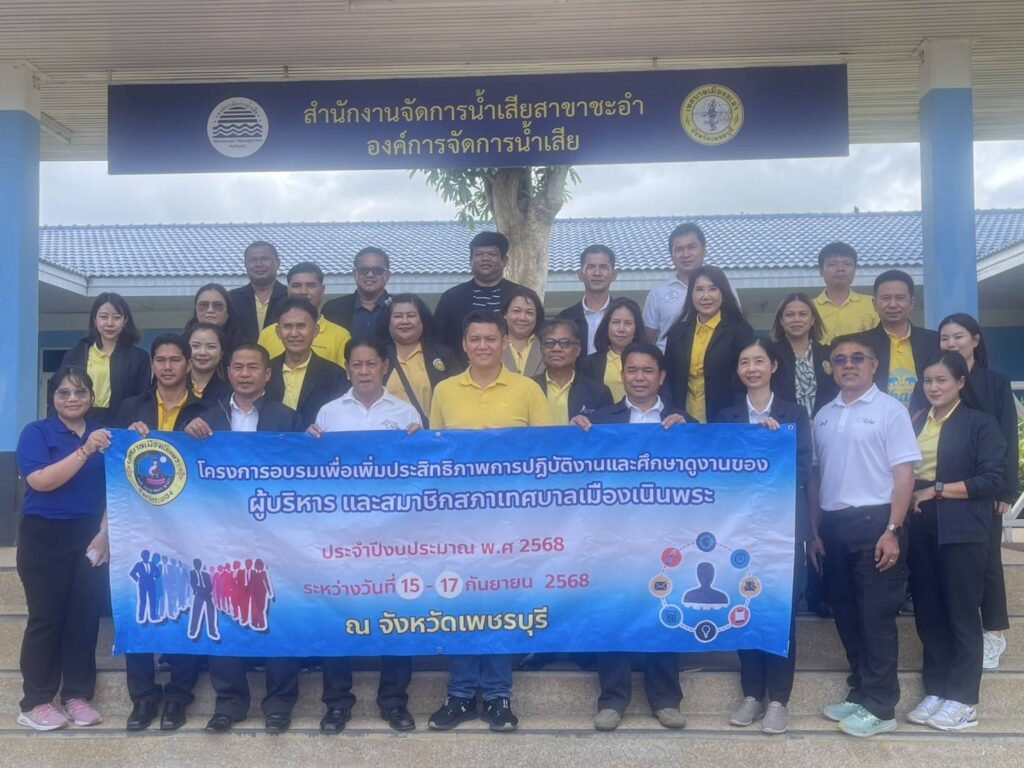วันที่ 15 กันยายน พ.ศ. 2568 องค์การจัดการน้ำเสีย สำนักงานจัดการน้ำเสียสาขาชะอำ ต้อนรับคณะศึกษาดูงาน จากเทศบาลเมืองเนินพระ จังหวัดระยอง จำนวน 30 คน ที่เข้าเยี่ยมชมระบบบำบัดน้ำเสีย โดยมีรักษาการแทนผู้จัดการสำนักงานจัดการน้ำเสียสาขาชะอำ และพนักงาน ร่วมบรรยายให้ความรู้การบริหารจัดการระบบบำบัดน้ำเสีย ณ ห้องประชุมศูนย์บริหารจัดการคุณภาพน้ำเทศบาลเมืองชะอำ จังหวัดเพชรบุรี