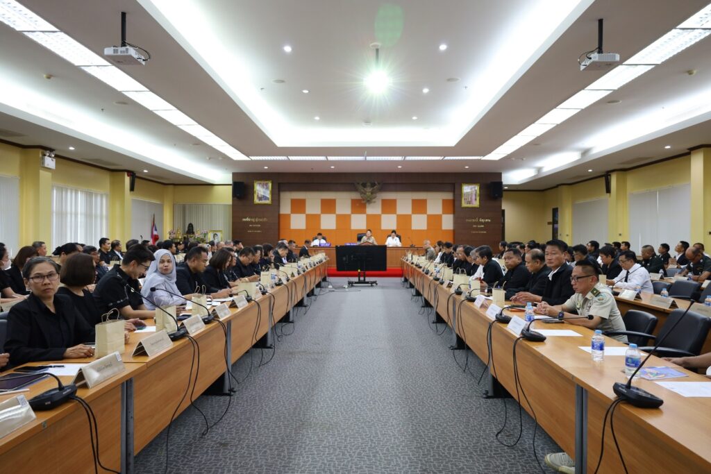 วันที่ 14 พฤศจิกายน พ.ศ. 2568 ประชุมการมอบนโยบายการปฏิบัติราชการ ผู้ว่าราชการจังหวัดกระบี่และนายกเหล่ากาชาดจังหวัดกระบี่ มอบนโยบายการปฏิบัติราชการจังหวัดกระบี่ พร้อมสานต่อภารกิจเพื่อให้ “กระบี่เป็นพื้นที่ปลอดภัย เมืองน่าอยู่ ผู้คนน่ารัก”