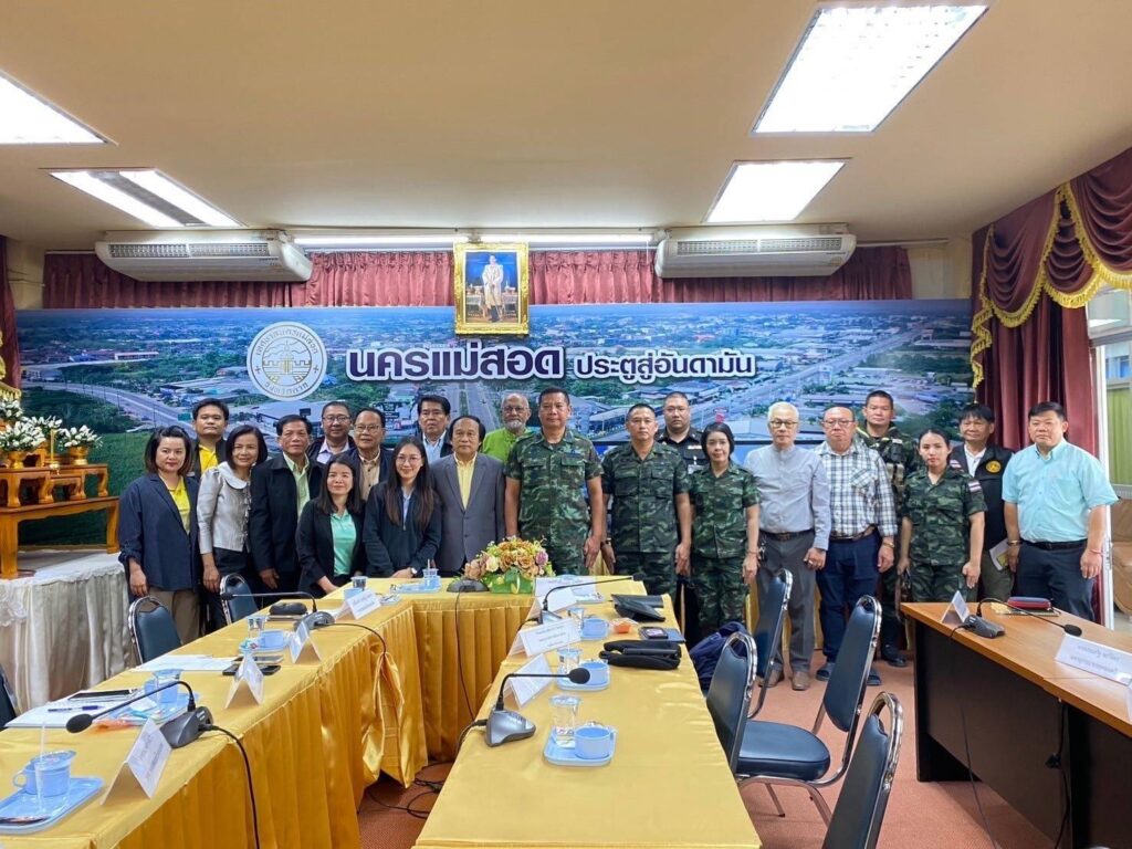 วันที่ 8 มกราคม 2568 เวลา 9.30 น. เทศบาลนครแม่สอดได้จัดประชุมเรื่องการเข้าสำรวจพื้นที่การปล่อยน้ำเสียริมฝั่งแม่น้ำเมย ในการนี้มีพลตรีภูมิ กัลยาณมิตร ผู้อำนวยการสำนักปฏิบัติการเพื่อความมั่นคงกิจการชายแดนทหารเป็นประธานในการประชุม และมีว่าที่ ร.ต.ประเสริฐ ปวงละคร นายกเทศมนตรีนครแม่สอด และผู้บริหารเทศบาลนครแม่สอด เข้าร่วมประชุมและให้การต้อนรับ ในการนี้มีว่าที่ ร.ต.หญิงอภันตรี เพ็ชร์โยธิน ผู้จัดการสำนักงานจัดการน้ำเสียสาขาแม่สอด ร่วมบรรยายการดำเนินงานบริหารจัดการระบบบำบัดน้ำเสียเทศบาลนครแม่สอด จังหวัดตาก
